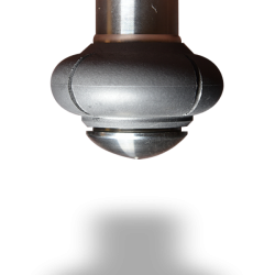The disc rotates friction free on hydraulic bearing instantly creating washing liquid droplet spheres with